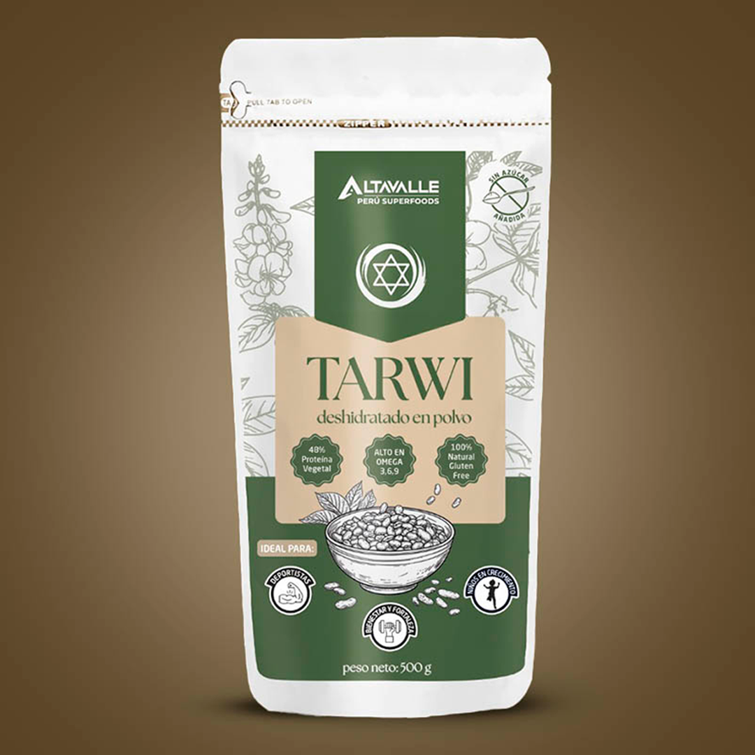 La Harina de Tarwi se elabora a partir del tarwi (Lupinus mutabilis), una leguminosa andina reconocida por su extraordinario valor nutricional. Tras un proceso de selección, desamargado tradicional y molienda fina, se obtiene un producto 100% natural, libre de aditivos, conservantes y químicos.